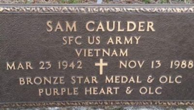Caulder enlisted in the United States Army immediately after high school and proudly served his country for 23 years, retiring in 1986. Over the course of these years, he was stationed in the United States, Korea, Germany, and four tours in Vietnam. For his dedication, he received several high honors: the Bronze Star with the W/V Device, Bronze Star, 3rd Oak Leaf Cluster, Purple Heart (2 devices), Army Accommodation Medal, Good Conduct Medal, Vietnam Campaign Medal (6 devices), Master Parachute Badge, and the Republican of Vietnam Campaign Medal.
